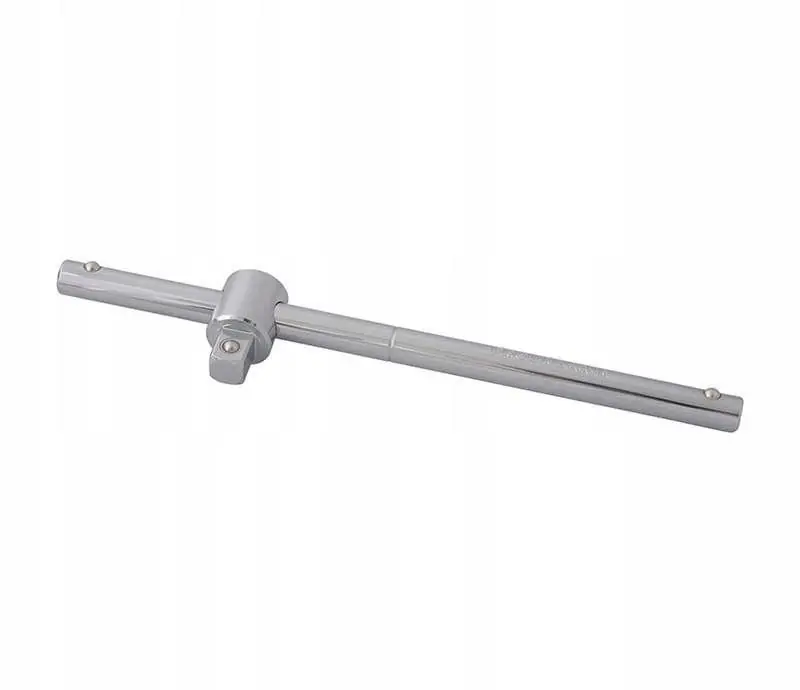 PROLINE 18863 Rękojeść pokrętło przesuwne typu T 3/4″ 460 mm CrVZastosowanie:Pokrętło do nasadek z przesuwnym zabierakiem marki PROLINE pozwala odpowiednio dokręcić lub odkręcić śruby. Posiada kwadrat do mocowania nasadek, który można swobodnie przesuwać wzdłuż pokrętła wybierając najbardziej optymalne miejsce umożliwiające pracę nasadką. Zastosowanie dodatkowej przedłużki pozwala na używanie takiego zestawu jako klucza typu T, dzięki któremu wykonasz niezbędną pracę nawet w miejscach z ograniczonym dostępem.Charakterystyka:pokrętło typu T o całkowitej długości 460 mm posiada przesuwny zabierak z kwadratem mocującym nasadki i inne akcesoria 3/4″wykonane z wytrzymałej na skręcanie i pęknięcia stali chromowo-wanadowej CrV zabierak można swobodnie przesuwać wzdłuż pokrętła wyposażone w blokadę kulkową – zabezpieczenie z obu stron, które uniemożliwia zsunięcie się zabieraka z pręta pokrętła możliwość używania dwóch rąk w trakcie dokręcenia lub odkręcania śrub