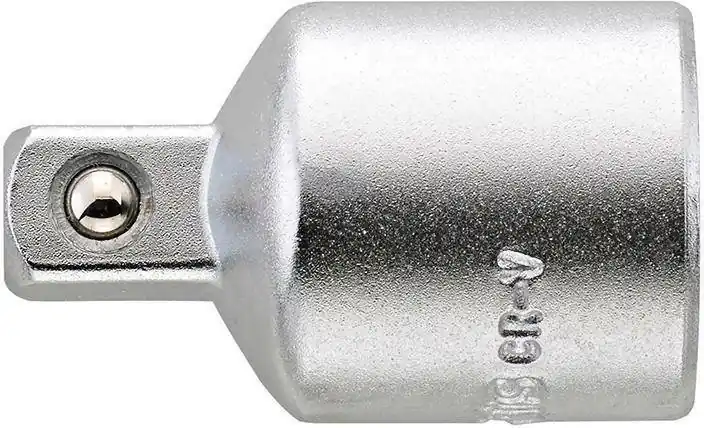 Adapter redukcyjny 3/8″•chromowany matowo,ze stali chromowo-wanadowej •zabierak czworokątny DIN 3120 – C 10, ISO 1174 •z ustalaczem kulkowym
