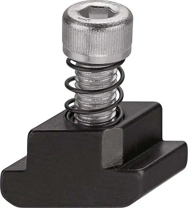 Adapter z nakrętką rombową do rowków teowychWykonanie: nakrętka rombowa ze stali hartowanej, czerniona. Nakrętkę rombową ze zintegrowanym mechanizmem oporowym można po prostu włożyć w rowek teowy od góry i mocno przykręcić. Zastosowanie: do regulacji docisków szybkomocujących na stołach z rowkami teowymi. Nadaje się do obróbki drewna i spawania. Dostawa: zestaw śrub do montażu różnych docisków szybkomocujących i adapterów.