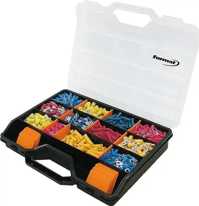 ZESTAW szczypiec i końcówek kablowych ze SZCZYPCAMI DO ŚCIĄGANIA IZOLACJI MARKI KNIPEX Wykonanie: Tulejki kablowe izolowane, złączki okrągłe proste, złączki płaskie, tulejki złączne okrągłe i wtyczki do średnicy kabla 0,5–6 mm². Dostawa w przystosowanym do układania w stosy TANOS MINI-Systainer®.  Szczypce z elektropiecowej stali chromowo-wanadowej, odkuwane, hartowane w oleju i odpuszczane. Główka czerniona. Do optymalnego zaciskania i zgniatania tulejek, rękojeści z przełożeniem na dźwignie z nakładkami z tworzywa wielokomponentowego.Samonastawne szczypce ze szczególnie łatwą mechaniką. Zmniejszone ryzyko uszkodzenia kabla dzięki samoczynnemu dostosowywaniu się ostrzy do średnicy kabla. Przesuwny zderzak i łatwo wymienialne ostrza. Ergonomiczne rękojeści z elementami z miękkiego tworzywa.Informacja dodatkowa: TANOS MINI-Systainer® mogą być łączone ze sobą.1 szczypce do zaciskania PreciForce® (55100025) 25 tulejek kablowych 0,5–1,0 mm², Ø 4 mm 25 tulejek kablowych 0,5–1,0 mm², Ø 5 mm 25 tulejek kablowych 1,5–2,5 mm², Ø 4 mm 25 tulejek kablowych 1,5–2,5 mm², Ø 5 mm 25 tulejek kablowych 1,5–2,5 mm², Ø 6 mm 20 tulejek kablowych 4,0–6,0 mm², Ø 6 mm 20 tulejek kablowych 4,0–6,0 mm², Ø 8 mm 25 izolowanych złączy stykowych 0,5–1,0 mm² 25 izolowanych złączy stykowych 1,5–2,5 mm² 20 izolowanych złączy stykowych 4,0–6,0 mm² 25 złączek płaskich 0,5–1,0 mm², Ø 6,3 x 0,8 mm 25 złączek płaskich 1,5–2,5 mm², Ø 6,3 x 0,8 mmSzczypce do zaciskania tulejek i ściągania izolacji kablowychGłówka polerowanaStal chromowo-wanadowa o dużej wytrzymałości, kuta, hartowana olejowoRękojeści z tworzywa sztucznego, powlekaneZestaw zawiera: 1 szczypce do zaciskania PreciForce® (55100025), 1 samonastawne szczypce do usuwania izolacji (54900005)Wyposażenie: 25 tulejek kablowych: 0,5–1,0 mm², Ø 4 mm; 0,5–1,0 mm², Ø 5 mm; 1,5–2,5 mm², Ø 4 mm; 1,5–2,5 mm², Ø 5 mm; 1,5–2,5 mm², Ø 6 mm, 20 tulejek kablowych: 4,0–6,0 mm², Ø 6 mm; 4,0–6,0 mm², Ø 8 mm, 25 izolowanych złączy stykowych: 0,5–1,0 mm²; 1,5–2,5 mm² 20 izolowanych złączy stykowych: 4,0–6,0 mm², 25 złączek płaskich: 0,5–1,0 mm², Ø 6,3 x 0,8 mm; 1,5–2,5 mm², Ø 6,3 x 0,8 mmZastosowanie: do izolowanych końcówek kablowych i złączek wtykowych 0,5–6 mm²Gwarancja bezterminowa