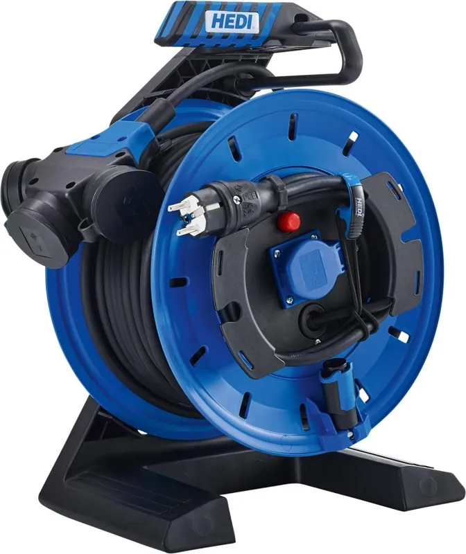 BĘBEN KABLOWY MARKI FORMATBĘBEN KABLOWY – solidny przedłużacz niemieckiej marki FORMAT. Wytrzymały model wykonany z nierdzewnej, ocynkowanej blachy stalowej. Jest bezpieczny – spełnia standardy IP44.- Typ kabla – Neopren H07 RN-F 3G 2,5H = przewód odpowiadający wymaganiom norm zharmonizowanych07 = napięcie znamionowe`450/750 VR = materiał izolacyjny – kauczuk naturalny lub syntetycznyN = powłoka – kauczuk chloroprenowyF = żyła cienkodrutowa giętka dla połączeń ruchomych3 = liczba żył – 3G = żyła ochronna – obecność żyły zielono-żółtej2,5 = przekrój żył – 2,5mmProfesjonalny i bezpieczny przedłużacz bębnowy marki FORMAT.Produkt posiada 3 gniazda wtykowe ze stykami ochronnymi. Wyposażony w ochronę przed wodą rozpryskową oraz w samozamykające się pokrywy. Posiada także ochronę przed nagrzaniem oraz diodę ostrzegawczą, która reaguje na przeciążenia. Ponadto bęben jest bardzo stabilny dzięki stabilnemu stelażowi. Przedłużacz jest przeznaczony do stosowania w pomieszczeniach oraz krótkotrwałego stosowania na dworze.