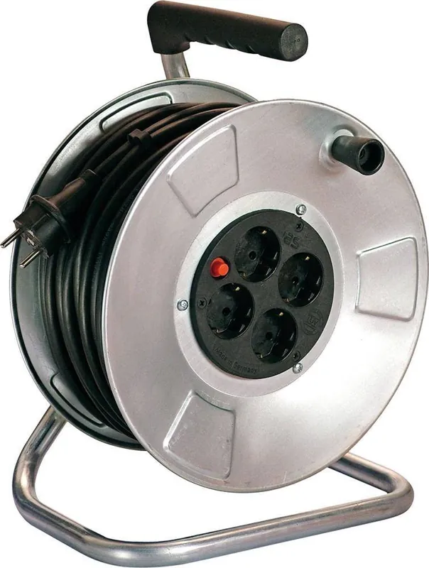 Bęben kablowy IRON COAT•blacha stalowa ocynkowana ogniowo ze specjalną izolacją ochronną •amortyzowana, stabilna, ocynkowana podstawa, hamulec postojowy •ergonomicznie ukształtowana rękojeść •wtyczka ze stykiem ochronnym •3 gniazda ze stykiem ochronnym i pokrywami na zawiasach oraz znakiem młotka •termiczny wyłącznik ochronny •z opatentowanym prowadzeniem kabli •sprawdzony według EN 61242, DIN VDE 0620-1, DIN EN 50525-2, IEC 60309 •nadaje się do stosowania w przemyśle i na placach budowy zgodnie z BGI 608 •230 V, 16 A, maks. 3500 W •oznaczenie CE, K2, stopień ochrony IP44