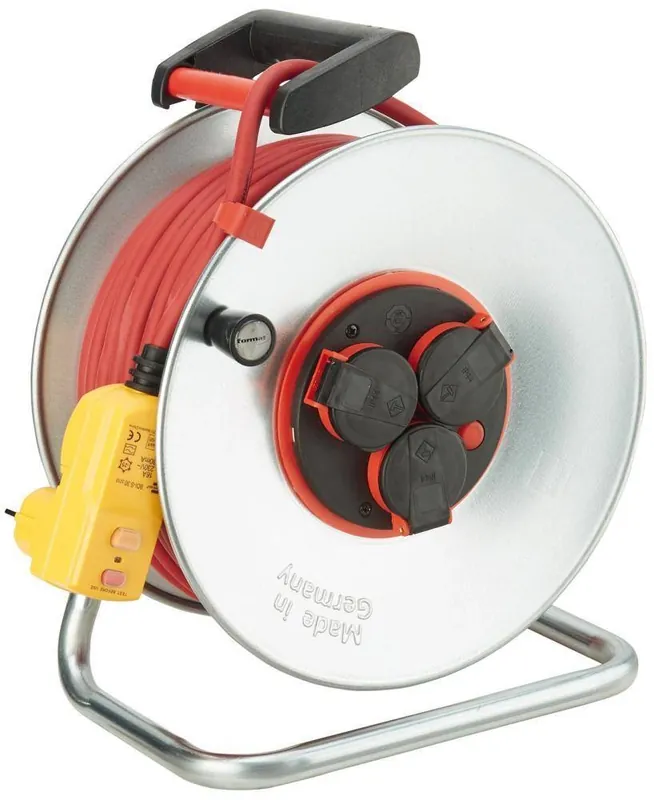 BĘBEN KABLOWY WEWNĘTRZNY MARKI FORMAT 10mFORMAT BĘBEN KABLOWY- solidny przedłużacz niemieckiej marki FORMAT. Wytrzymały model wykonany ze specjalnego tworzywa sztucznego odpornego na uderzenia.Dane techniczne:Długość kabla – 10 mŚrednica bębna – 225 mmTyp kabla – tworzywo sztuczne H05 VV-F 3G1,5H = przewód odpowiadający wymaganiom norm zharmonizowanych05 = napięcie znamionowe`300/500 VV = materiał izolacyjny – PCWV = powłoka – PCWF = żyła cienkodrutowa giętka dla połączeń ruchomych3 = liczba żył – 3G = żyła ochronna – obecność żyły zielono-żółtej1,5 = przekrój żył – 1.5mmProdukt posiada 4 gniazda wtykowe ze stykami ochronnymi. Wyposażony w ochronę przed przegrzaniem oraz ochronę przed dziećmi. Ponadto bęben jest bardzo stabilny dzięki podwójnej stopie i posiada ergonomicznie formowany uchwyt. Przedłużacz jest przeznaczony do stosowania w pomieszczeniach.