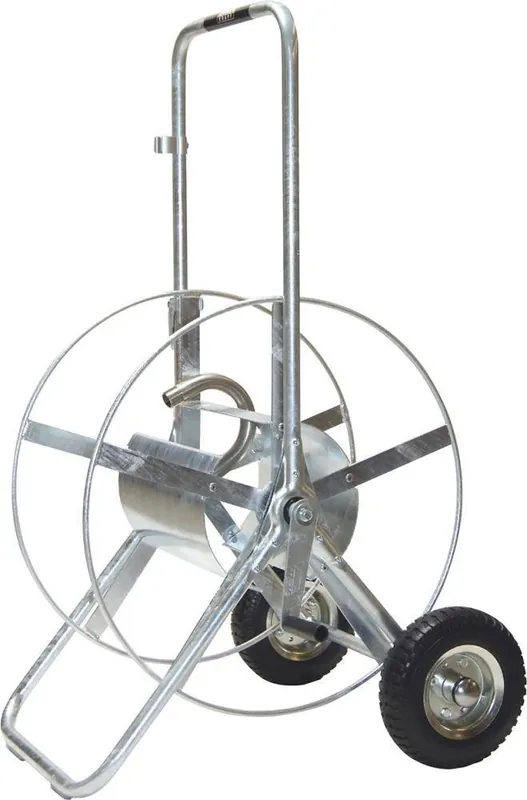 Bęben na wąż ALBA Star, seria 2•niezwykle wytrzymała konstrukcja stalowa •ocynkowany galwanicznie (bez chromu 6) •podwójne łożysko •chroniący wąż bęben z wygodnym, nierdzewnym kolankiem przyłączeniowym – bez zaginania węża •przepływ wody 3/4″ •złącze obrotowe z łożyskami kulkowymi dla łatwego odwijania i nawijania •odporność na ciągłe obciążenie i ciśnienie •bęben na wąż i korba z łożyskiem stalowym •z blokadą bębna •koła PU z obręczami stalowymi Ø 215 mm •podkładki antypoślizgowe chroniące podłogę Dane techniczne: •wymiary wys. x szer. x gł.: 1024 x 603 x 605 mm •ciężar (bez węża): 14 kg •maks. ciśnienie robocze: 25 barów •przyłącze węża 3/4″ gwint zewnętrzny •maks. długość węża: 1/2″ = 120 m; 5/8″ = 100 m; 3/4″ = 80 m; 1″ = 50 m