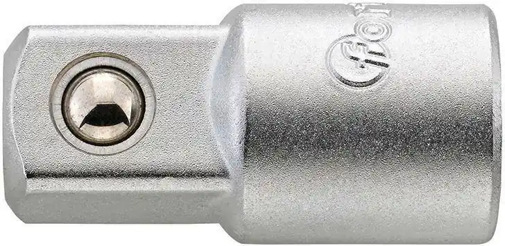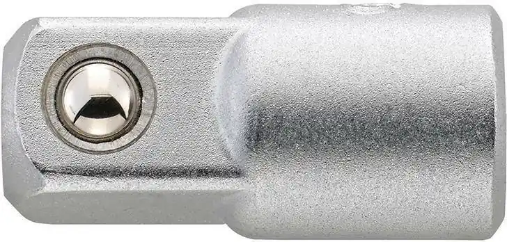 Adapter zwiększający 1/4″•chromowany matowo •ze stali chromowo-wanadowej •zabierak czworokątny DIN 3120 – D 6,3, ISO 1174 •z ustalaczem kulkowym