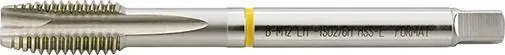 Gwintownik maszynowy do otworów przelotowych, gwint lewyWykonanie: kształt nakroju B (4–5 zwojów). Zastosowanie: do gwintów metrycznych lewych według DIN ISO 13. Przeznaczony w szczególności do stalizwykłych, konstrukcyjnych, automatowych, stali do nawęglania i do ulepszania cieplnego.