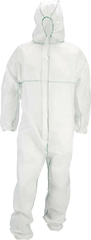 Jednorazowy kombinezon ochronny »Comfort«Właściwości: •oddychający •antystatyczny •wygodny krój, optymalny komfort noszenia Wykonanie: •trójpanelowy kaptur •elastyczne wstawki w pasie, nogawkach i rękawach Materiał: SMMS, 60 g/m² Zakres zastosowania: utylizacja azbestu, prace dachowe i na budowach, konserwacja i brudne prace, szlifowanie metalu i włókna szklanego, malowanie powierzchni metalowych, proste prace lakiernicze i malarskie, jako kombinezon ochronny dla odwiedzających Dopuszczenie/norma: wg DIN EN ISO 11612, DIN EN 531 Kolor: biały