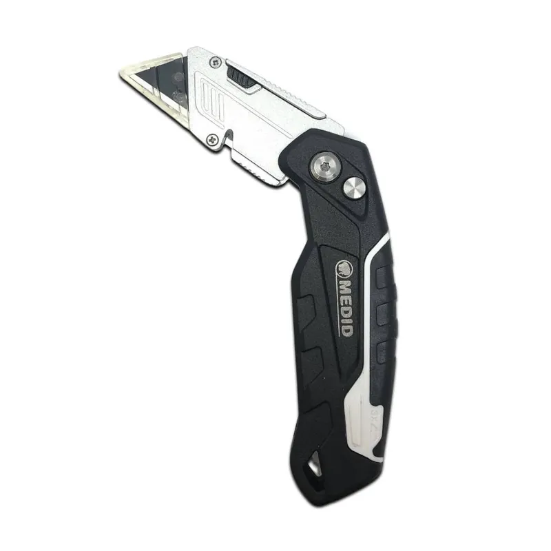 PROFESJONALNY NÓŻ ROZKŁADANY 160mm BESSEYDługość całkowita: 160 mmWykonanie: Obudowa z tworzywa sztucznego, czarno-czerwona z klipsem na pasek i magazynkiem na ostrza w uchwycie. Szybka i pewna wymiana ostrza bez narzędzi. Na górnej krawędzi ostrza umieszczono poduszeczkę na kciuk, dzięki temu możliwy jest maksymalny nacisk na ostrze. Ostrze stabilne i może wraz z systemem trzymającym zostać złożone tak jak to jest w przypadku tradycyjnych składanych noży. Dostawa wraz z 5 trapezowymi ostrzami zapasowymi.