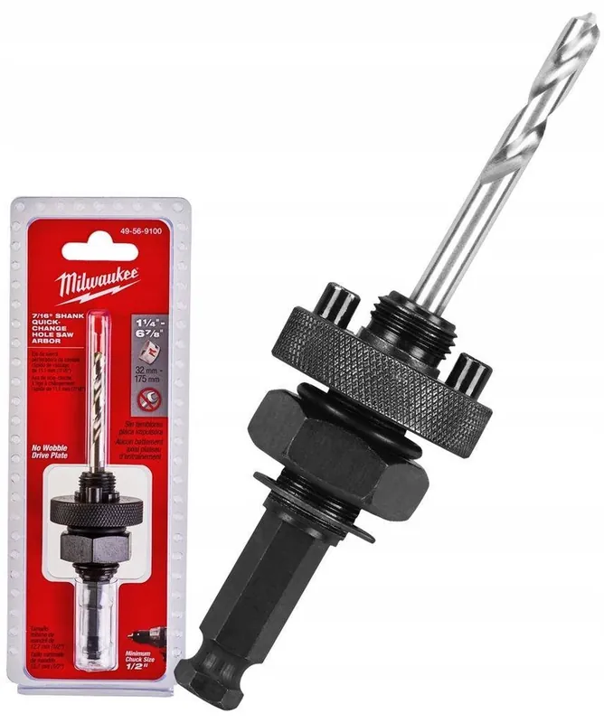 Trzpień uchwyt do otwornic pił walcowych 32-210mm hex 11mmMilwaukee 49569100Zawartość zestawu:Uchwythex 11mm do otwornic 32-210mm Milwaukee 49569100Trzpień Milwaukee z dużym gwintem przeznaczony do koronek o średnicy 32-210mm. Nakrętka ustalająca zabezpiecza i blokuje tarczę zabierakową trzpienia na tylnej stronie piły, mocując ja stabilnie, dzięki czemu redukuje się bicie osiowe i drgania piły walcowej. Dzięki stabilnej konstrukcji uzyskano idealną współśrodkowość. Trwała konstrukcja ze stali hartowanej.Dane techniczne:Dla pił o średnicy: 32-210mmUchwyt: 11mm HexUchwyt otwornicy: 5/8”x18Kod producenta: 49569100Producent: MilwaukeeEAN: 045242200832