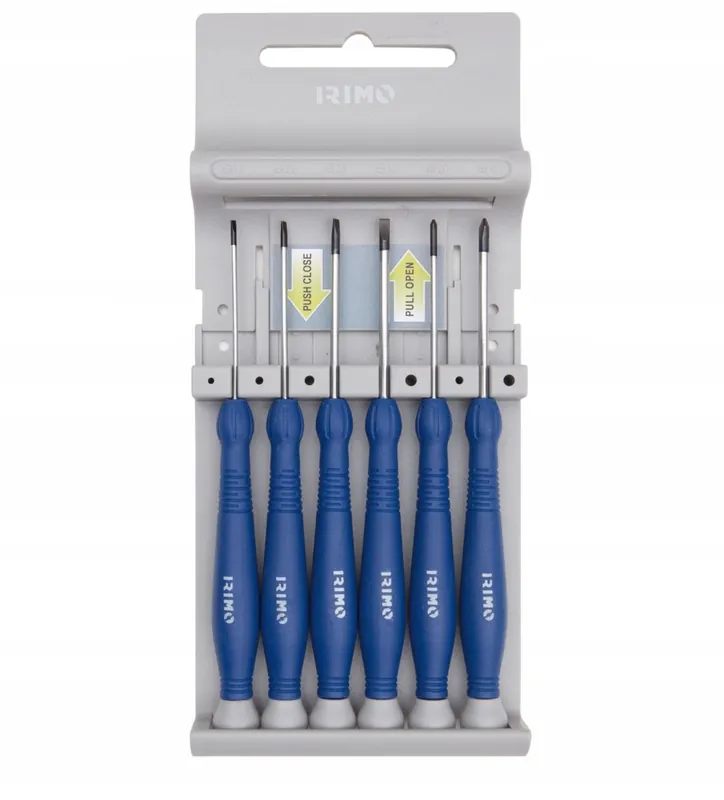 10207 Zestaw wkrętaków CrV-Mo, Soft-touch, 6 elementów, Proline10207 Zestaw wkrętaków CrV-Mo, Soft-touch, 6 elementów, Proline 10207 Zestaw wkrętaków CrV-Mo, Soft-touch, 6 elementów, Proline Dane Techniczne: Zestaw wkrętaków CrV-Mo, Soft-touch, Proline 10207 Screwdriver Set, Schraubendreher-Set Groty wkrętaków wykonane ze stali chromowo-wanadowomolibdenowej zwiekszającej odporność na ścieranie i trwałość grota. Końcówka grota śrubokręta magnetyczna. Rękojeść śrubokrętów dwuskładnikowa z twardego i miękkiego antypoślizgowego tworzywa. Twardość 56 +/-2 HRC. Wkrętaki płaskie 3.2×75, 5×100, 6×150 mm Wkrętaki krzyżowe: PH0x75, PH1x75, PH2x100 mm Półka do zawieszenia na ścianie