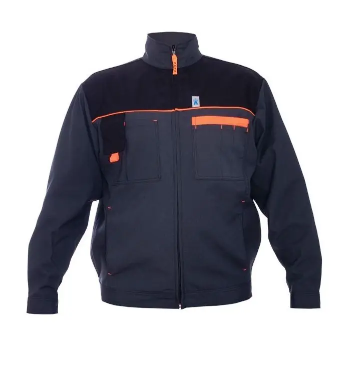 Bluza robocza POSEJDON „SARA” r. M Bluza wykonana jest z materiału poliester 65%/bawełna 35% 250g/m2 i ma wzmocnienia z Cordury.Bluza robocza zapinana jest na zamek plastikowy. Karczek bluzy z przodu i z tyłu wzmocniony jest materiałem z Cordury.Bluza posiada dwie duże kieszenie piersiowe:po prawej stronie kieszeń na telefon komórkowy zapinana na rzep,po lewej stronie kieszeń jedna duża kieszeń na którą naszyta jest jeszcze jedna kieszonka podzielona na trzy mniejsze kieszenie.Bluza posiada dwie kieszenie dolne. Rękawy zapinane są na guziki. U dołu bluzy po obu stronach są rzepy do regulacji obwodu.Podkrój szyi wykończony stójką. Bardzo estetyczne szycia, wykonana z bardzo wysokich gatunkowo materiałów. Bluza robocza nowa zapakowana w folie.