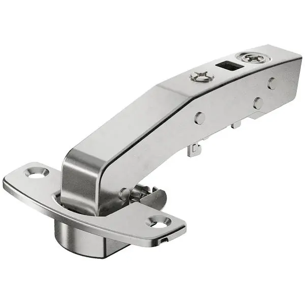 Winkelscharnier +45° mit AufklipstechnikFür Diagonalschränke, Korpuswinkel 135°Für Türstärken ab 15 mm bis 28 mmTopfdurchmesser 35 mmTopftiefe 12,8 mmIntegrierte Auflagenverstellung ± 2 mmIntegrierte Tiefenverstellung + 3/- 2 mmHöhenverstellung über Montageplatte ± 2 mm