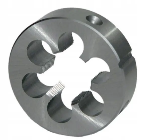 FANAR Narzynka G-1/2″ DIN-EN 24231 HSS 800Narzynka HSS 800 zgodna z DIN-EN 24 231 nacina gwint rurowy walcowy.Materiał, z jakiego została zrobiona narzynka – wysokowydajna stal szybkotnąca – charakteryzuje się wysoką odpornością na zużycie. Narzynka jest przeznaczona do stali konstrukcyjnych węglowych, automatowych i niskostopowych o wytrzymałości 600MPa<=Rm<=800MPa. Przed użyciem narzynki należy na elemencie obrabianym wykonać sfazowanie 45° w celu uniknięcia większych obciążeń krawędzi tnących. Narzynka powinna być ustawiona prostopadle względem śruby. Aby obciążenie zębów podczas obróbki było niższe, średnica pręta musi by zawsze mniejsza niż średnica zewnętrzna gwintu na narzynce.Dane techniczne:Rozmiar: G-1/2"średnica nominalna gwintu: 20,96 mmSkok gwintu (1"/P): 14Podziałka gwintu (skok): 1,814 mmśrednica zewnętrzna (d2) x grubość narzynki (h1): 45 x 14 mmOtwory wiórowe (W): 6Materiał: HSSNakrój: 1,75PTolerancja: Aśrednica pręta do wykonania gwintu: 20,81 mmNumer katalogowy: N1-121001-3131