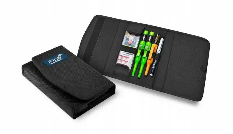 Profesjonalny zestaw znaczników do znakowania Master-Set Joiner 550/10 PicaPrzydatny, kompaktowy zestaw do znakowania dla stolarzy, monterów, oraz dekoratorów wnętrz Pica Master-Set Joiner 550/10.Zestaw do profesjonalnego użytku.Z zapięciem na rzep.Pojedyncze opakowanie z wysuwaną zawieszką z tworzywa sztucznego.Zawartość zestawu:Automatyczny długopis Pica-Dry Longlife 3030Zestaw zapasowych rysików grafitowych Pica-Dry Joiner H 4050Zestaw specjalnych zapasowych wkładów Basic grafitowe, czerwone oraz żółte 2B 4020Czarny marker do głębokich otworów 150/46Biały marker permanentny Pica Classic 533/52