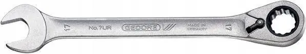 Profesjonalny Klucz Płasko Oczkowy z Grzechotką GEDOREProfesjonalny i solidny klucz płasko-oczkowy z grzechotką niemieckiej firmy GEDORE. Klucz charakteryzuje się najwyższą jakością wykonania oraz długą, bezawaryjną pracą.Ekstremalnie szybkie zastosowanie również w bardzo wąskich miejscach z uwagi na bardzo mały kąt roboczy Firmie GEDORE udało się zredukować prawie do zera luz pomiędzy zapadką a wkładką poprzez mechanikę natychmiastowego zetknięcia się narzędzia. Poprzez dalszy rozwój technologii grzechotek uzyskano bardzo mały, efektywny kąt roboczy, tzn. martwy kąt roboczy klucza został zredukowany do minimum. Klucz zaczyna działać aktywnie już w tym miejscu, gdzie inne jeszcze nie zaczęły.Kąt roboczy: 7° od 8 do 15 mm oraz 6° od 16 do 24 mmBardzo wysokie przenoszenie momentu obrotowegoPoręczne poprzez profil drążony na trzonkuGeometria odporna na odkształcenia z efektem belki dwuteowejStal wanadowa GEDORE 31CrV3Szczęki zeszlifowane dokładnie do rozwartości kluczaDla efektywnego odkręcania lub szybkiego dociągania, z dźwignią przełączania