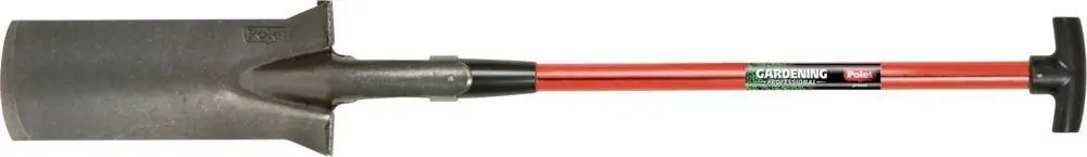 Łopata, model ogrodniczy, Import•stal nierdzewna •połączenie blatu i tulejki trzonka typu gęsia szyja •wygięte podparcie dla stopy