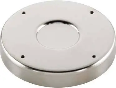 Magnes garnkowy, płaskiWykonanie: z AlNiCo 500, z powłoką stalową i przelotowym otworem wpuszczanym. Maksymalna temperatura pracy: 450 °C Zastosowanie: do zabudowy w przyrządach do przytrzymywania.