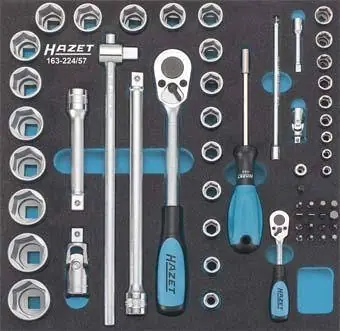 Moduł narzędziowy z nasadkami wkrętakowymi 1/2″ powlekane TiN, 13-cz., moduł 1/3Wykonanie: Narzędzia są umieszczone w 2-kolorowym wkładzie piankowym, gdzie natychmiast zauważa sięich brak. Moduł 1/3 = 172 x 342 mm Moduł 2/3 = 344 x 342 mm Moduł 3/3 = 519 x 342 mm Wskazówka: Pasuje do wózków warsztatowych Hazet, dla modelu 179 trzeba użyć modułu dystansowego.Pasuje do stołów warsztatowych na kółkach Hazet.Zawartość zestawu: 9 nasadek wkrętakowych 1/2″ do śrub z łbem z gniazdem sześciokątnym 5; 6; 7; 8; 10; 12; 14; 17; 19 mm 4 nasadki wkrętakowe 1/2″ do śrub z łbem z gniazdem sześciokątnym, z główką kulistą 6; 7; 8; 10 mm