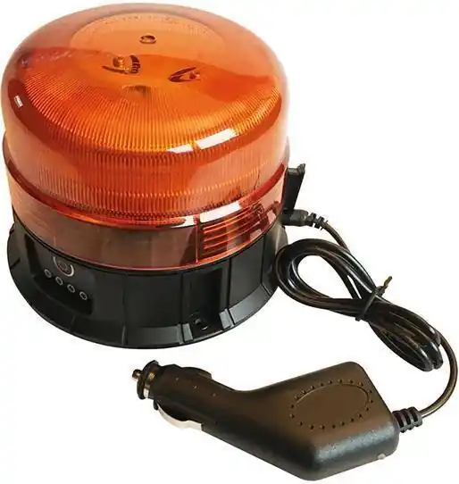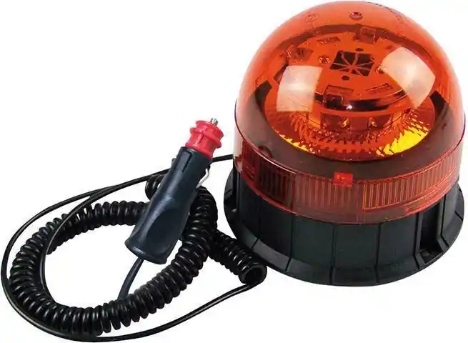 Lampa sygnałowa obrotowa, akumulatorowa 12/24 V, R65•lampa sygnałowa obrotowa LED zgodna z ECE R65, ECE R10 z podstawą magnetyczną i przyssawkową lub do montażu stałego •wymiary całkowite wys. x grubość. ok. 140 x 11 mm •maskownica lampy wys. x grubość. ok. 400 x 115 mm •36 lamp LED 19 W •120 błysków na minutę •akumulator zainstalowany na stałe (8800mA) •ładowanie 12/24 V (wejście) przy pomocy wtyczki do zapalniczki samochodowej z 9,5 V (wyjście) •wskaźnik poziomu naładowania •czas pracy do ok. 5 h. •zakres temperatur -30°C – do + 50°C •znak E: E9 10R-05.11190/TA1 E9 00.1824
