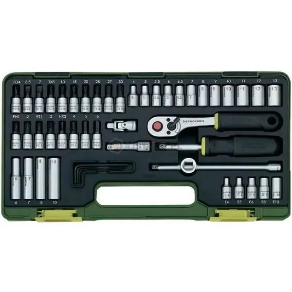 Zestaw końcówek wymiennych klucza nasadowego 12-kątnych 3/8″, 40-częściowyWykonanie: narzędzia ze stali wanadowej 31CrV3 GEDORE, kute, szlifowane i chromowane. Dostarczane w niebieskiej kasecie z blachy stalowej GEDORIT z zaokrągloną, bezszwową krawędzią i wkładką z tworzywa ABS.