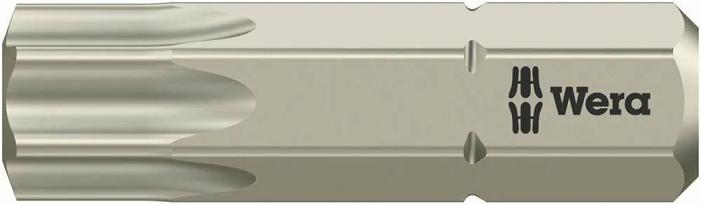 SOLIDNE BITY GROTY TORX ZE STALI NIERDZEWNEJ FIRMY WERAGroty 1/4″ DIN 3126 C 6,3 Stainless do śrub z wewnętrznym gniazdem TORX®Stal szlachetna – Stainless groty ze stali szlachetnej znajdują zastosowanie wszędzie tam, gdzie konieczne jest unikanie obcej rdzy na stali szlachetnej. Zastosowanie przy mocowaniu śrub ze stali szlachetnej w oknach, drzwiach, armaturze, zlewozmywakach, fasadach, balkonach, płotach itp. Dzięki próżniowemu hartowaniu uzyskuje się twardość warsztatową.Ogólna wskazówka: Narzędzia TORX PLUS® przewyższają znacznie możliwości narzędzi TORX® pod względem przenoszonego momentu obrotowego – dzięki znacznie większej powierzchni przylegania w śrubie. System TORX® i TORX PLUS® są kompatybilne tylko w jedną stronę narzędzia z systemem TORX® mogą być używane do śrub z gniazdem TORX PLUS® w ograniczonym zakresie. Natomiast stosowanie narzędzi TORX PLUS® w profilu TORX® jest niemożliwe.Wykonanie: Ze stali szlachetnej ze strefą skrętną. Zastosowanie: Produkt specjalny do skręcania śrub ze stali szlachetnej, do ich ochrony przed obcą rdzą.Torx: T8, T9, T10, T15, T20, T25, T30, T40Chwyt:sześciokątny 1/4″, do gniazd wg DIN 3126-D 6,3, ISO 1173Zastosowanie: do wkrętów z gniazdem TORX