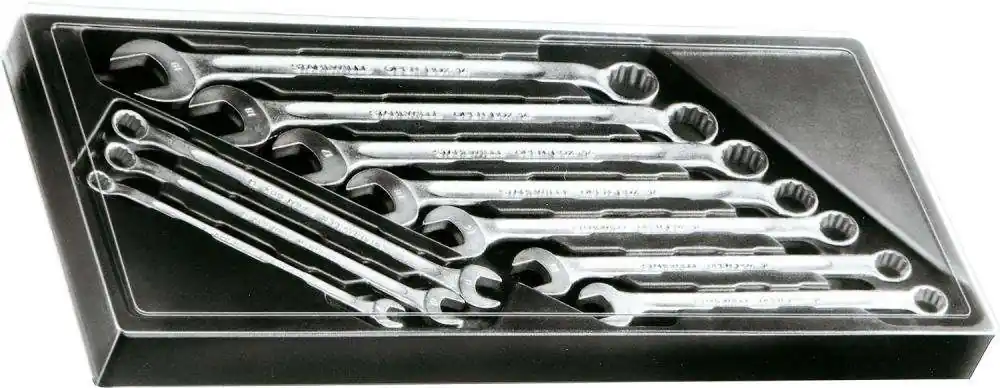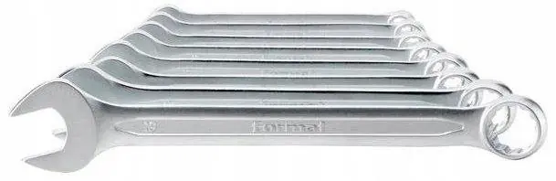 Klucz płasko-oczkowy, odsadzonyWykonanie: DIN 3113, ISO 3318, kształt B. Chromowane matowo, końcówka otwarta odchylona pod kątem 15°. Dostawa w pudełku kartonowym.Ze stali chromowo-wanadowej, chromowanej. Końcówka oczkowa głęboko odsadzona. Stabilna część chwytowa z profilem dwuteowym.