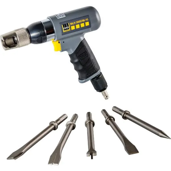 Leistungsstarker Meißelhammer mit enormer Schlagenergie für professionellen Einsatz überwiegend im Bauhandwerk. Durch die geringe Vibrationen ist der Meißelhammer besonders gelenkschonend. Sehr hohe Schlagleistung für härteste Materialien. Ermüdungsarmes Arbeiten durch kompakte Bauform und geringem Gewicht. Robustes Metallgehäuse für lange Lebenszeit. Sechskantaufnahme verhindert das Verdrehen der Meißel. Kreuzschlitz Haltekappe zum schnellen Meißelwechsel.Lieferung inkl. Spitzmeißel, Flachmeißel, Blechtrennmeißel. Blechschneidmeißel, Bolzenschlagmeißel, Länge je 175 mm, im Kunststoffkoffer.