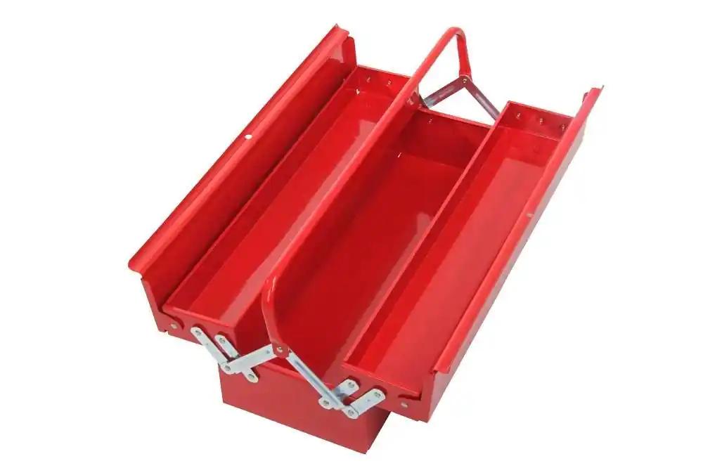 SKRZYNKA NARZĘDZIOWA METALOWA 3-CZĘŚCIOWA PROLINETrwała, wykonana w całości z grubej blachyPokryta farbą proszkowąKlawiaturowe zawiasy wiek górnychRączka wykonana z rurki, nie z zawijanej blachySkośne wieka poprawiające stabilność i zwiększające przestrzeń korytekMożliwość zabezpieczenia kłódkąWodzidła z grubej blachy, przymocowane stalowymi nitami zapewniają solidność i trwałość konstrukcji oraz bezawaryjne otwieranie i zamykanie skrzynkiŁatwość rozkładaniaMarka: PROLINEGwarancja: 24 miesiące