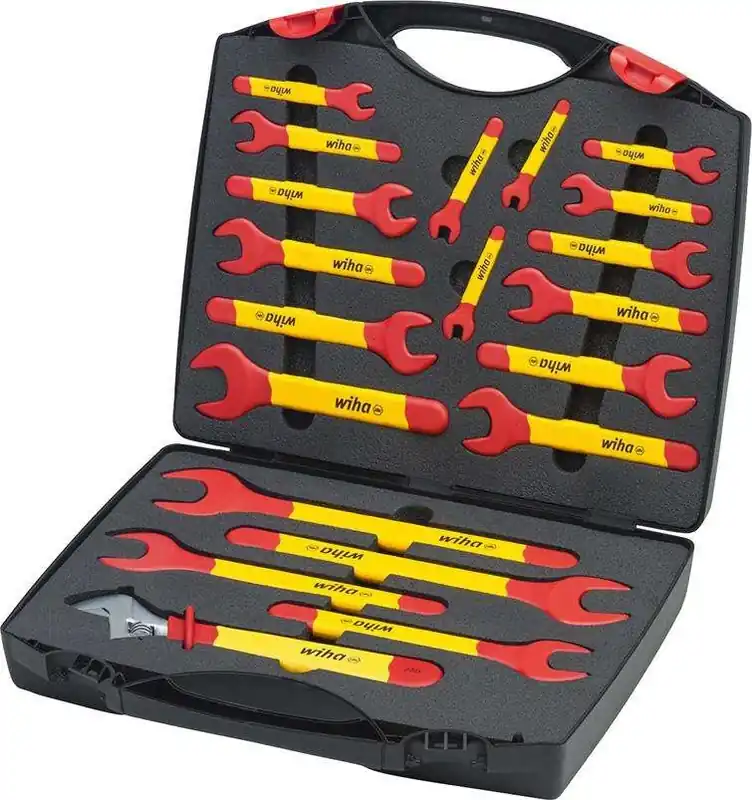 ZESTAW KLUCZY PŁASKICH DWUSTRONNYCH 9szt. FORMATKlucze płaskie dwustronne DIN3110 9-cz, FORMATZawartość zestawu: 6 x 7, 8 x 9, 10 x 11, 12 x 13, 14 x 15, 17 x 19, 19 x 22, 24 x 27, 30 x 32 mmWykonanie: DIN 3110, ISO 3318. Ze stali chromowo-wanadowej, odkuwany, chromowany matowo, odchylenie osi szczęk 15°, z płaskimi główkami i chwytną, owalną rękojeścią. Dostawa w kartonie.
