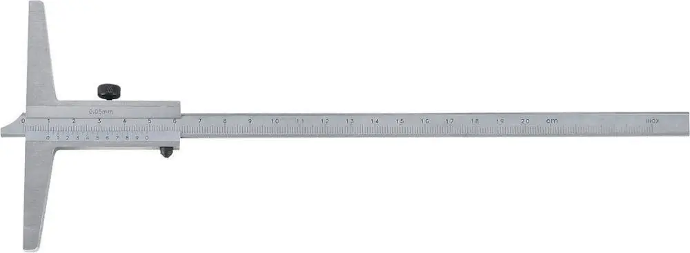 Profesjonalny Głębokościomierz INOX 150mm z Prostym Prętem Pomiarowym Niemieckiej Firmy FormatProfesjonalny niemieckiej marki FORMAT głębokościomierz wykonany jest ze stali nierdzewnej, hartowanej. Noniusz jest chromowany matowo i obustronnie oraz jest bardzo dokładnie wyskalowany. Wyposażony w śrubę ustalającą. Dostawa w kasecie z tworzywa sztucznego. SPECYFIKACJA:Zakres pomiarowy: 150mmOdczyt na dole: 0,05mmDługość mostka: 100mmPrzekrój szyny pomiarowej: 8 x 3 mmNorma: DIN 862.