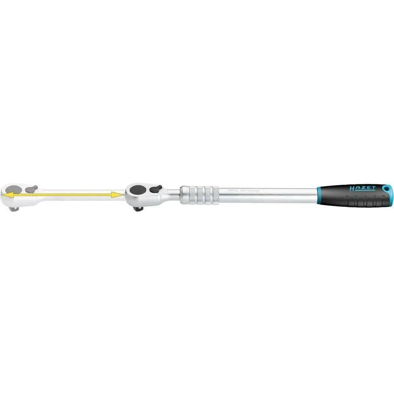 Teleskopowa grzechotka dwukierunkowa z przełącznikiem dźwigniowym 1/2″•chromowana matowo •ze stali chromowo-wanadowej •wysuwana, z blokadą •z przyciskiem zwalniającym do narzędzi nasadzanych •przełączanie przy pomocy przełącznika dźwigniowego •do narzędzi z gniazdem czworokątnym zgodnie z normą DIN 3120-C 12,5; ISO 1174 •72 zęby •kąt powrotu zapadki 5° •rękojeść 2-komponentowa
