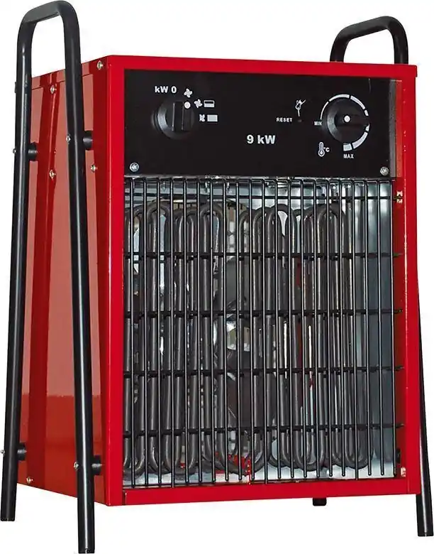Grzejnik elektryczny•obudowa z blachy stalowej: lakierowana proszkowo, z izolowanym uchwytem do przenoszenia •elementy grzewcze: zamknięte i odporne na rdzę •termostat bezstopniowy •wydajny wentylator: zapewnia stałą temperaturę •zabezpieczenie przed przeciążeniem: wyłącznik termiczny •2 lub 3-stopniowy przełącznik: dla różnych stopni ogrzewania •do ogrzewania magazynów i warsztatów, hangarów na łodzie, garaży, kontenerów budowlanych itp.
