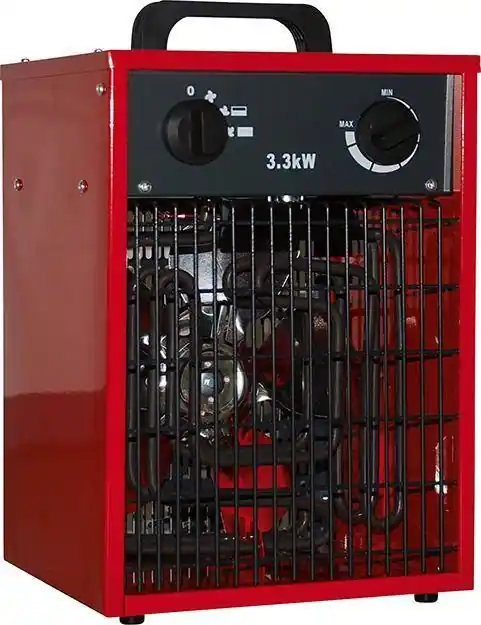 Grzejnik elektryczny•obudowa z blachy stalowej: lakierowana proszkowo, z izolowanym uchwytem do przenoszenia •elementy grzewcze: zamknięte i odporne na rdzę •termostat bezstopniowy •wydajny wentylator: zapewnia stałą temperaturę •zabezpieczenie przed przeciążeniem: wyłącznik termiczny •2 lub 3-stopniowy przełącznik: dla różnych stopni ogrzewania •do ogrzewania magazynów i warsztatów, hangarów na łodzie, garaży, kontenerów budowlanych itp.
