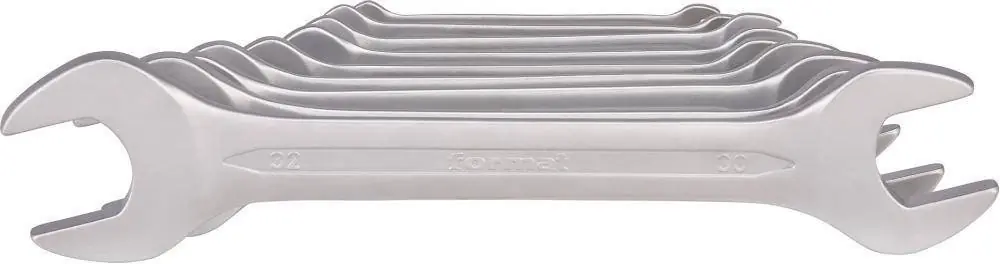 ZESTAW KLUCZY PŁASKICH DWUSTRONNYCH 12szt. FORMATKlucze płaskie dwustronne DIN3110 12-cz, FORMATZawartość zestawu: 6 x 7, 8 x 9, 10 x 11, 12 x 13, 14 x 15, 16 x 17, 18 x 19, 20 x 22, 21 x 23, 24 x 27, 25 x 28, 30 x 32 mmWykonanie: DIN 3110, ISO 3318. Ze stali chromowo-wanadowej, odkuwany, chromowany matowo, odchylenie osi szczęk 15°, z płaskimi główkami i chwytną, owalną rękojeścią. Dostawa w kartonie.
