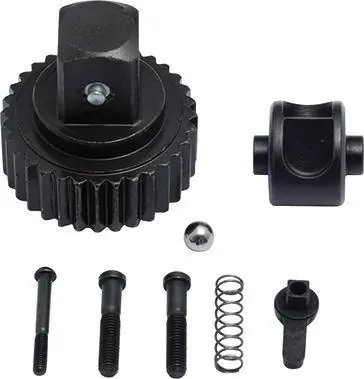 Zestaw naprawczy do grzechotek 1/2″Zastosowanie: kompletny zestaw naprawczy do grzechotki. Zakres dostawy: 1 kółko zębate grzechotki, 1 zapadka, 1 przełącznik dźwigniowy, 2 wkręty, 1 kulka i 1sprężyna dociskowa.