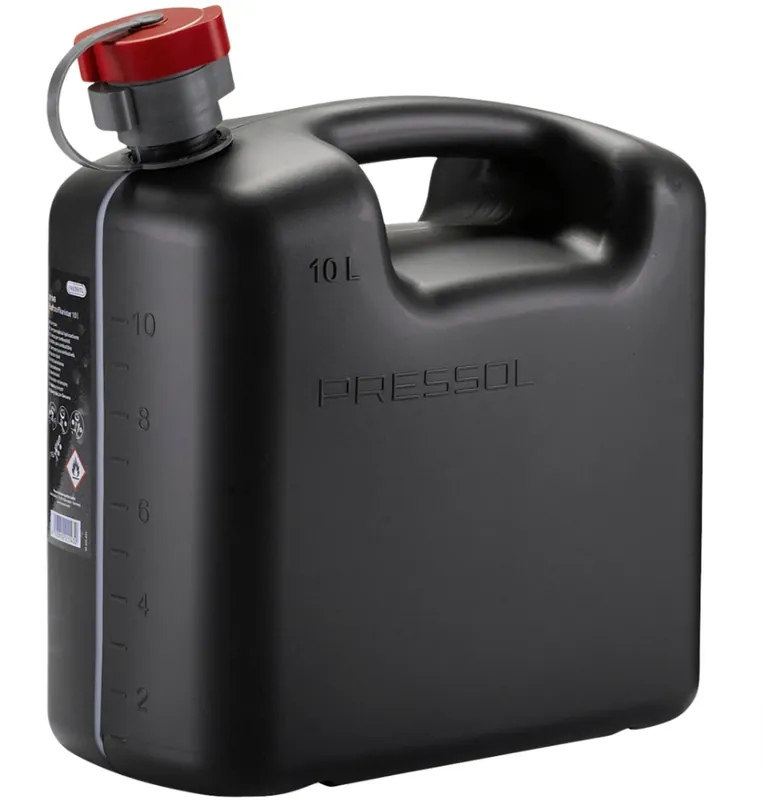 Odporny Kanister na Paliwo Benzynę 10L Pressol Tworzywa sztucznegoWysokiej jakości, oryginalny i solidny 10 L kanister na paliwo renomowanej firmy Pressol. Kanister wykonany z mocnego, odpornego na uderzenia, czarnego polietylenu. Giętka rurka wlewowa z polipropylenu ze zintegrowanym odpowietrzeniem gwarantuje równomierny strumień. Zakrętka zawieszana na szyjce kanistra na elastycznej taśmie dzięki czemu jest zabezpieczona przed zgubieniem.Rurka jest przechowywana wewnątrz kanistra – niesamowita ergonomia! Zapomnij o przechowywaniu rurki na zewnątrz, gdzie istnieje ryzyko osiadania i przyklejania się zanieczyszczeń do wewnętrznych ścianek po których płynie paliwo.Zabrudzona Rurka Wlewowa = Zanieczyszczone PaliwoKanister firmy Pressol rozwiązuje ten problem – zobacz na obrazku jak to działa.W większości kanistrów wykonanych z tworzywa sztucznego rurka wlewowa montowana jest na zewnątrz kanistra w innych znów jej brak. W przypadku kanistra renomowanej niemieckiej firmyPressol problem przypadkowego zgubienia lub zanieczyszczenia rurki wyeliminowano poprzez przechowywanie jej wewnątrz zbiornika. Dzięki temu przechowywanie jest jeszcze prostsze i bardziej wygodne podczas transportu. Garść zalet tego produktu:- W zestawie gięta rurka (średnica 20 mm) – Bezpieczeństwo przechowywania substancji łatwopalnych, o czym świadczy atest TUV- Możliwość chowania rurki w środku zbiornika- Mocne i wytrzymałe tworzywo z którego zrobiony jest kanister- Odporny na pęknięcia – Zintegrowany odpowietrznik