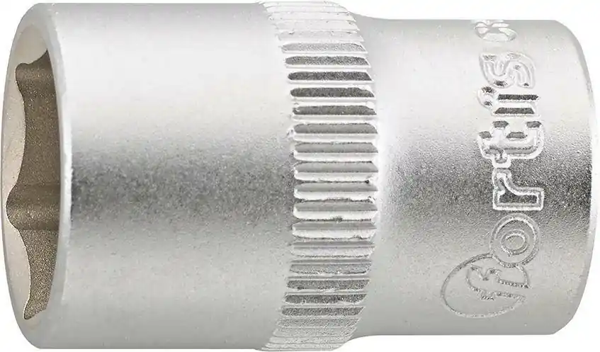 Końcówka wymienna klucza nasadowego 3/8″•chromowana matowo, stal chromowo-wanadowa, kuta •DIN 3124 •zabierak czworokątny DIN 3120 – C 10, ISO 1174 •z rowkiem ustalacza kulkowego i radełkowana powierzchnia uławiająca chwycenie