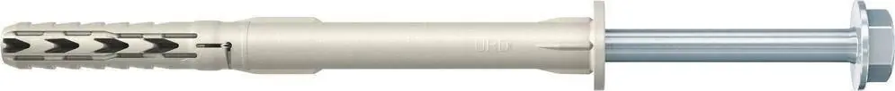 Kołek ramowy Upat® URD-T z wkrętem z łbem wpuszczonym, ocynkowany galwanicznie•kołek o długim trzonie z nylonu z krótką częścią rozporową o głębokości zakotwienia tylko 50 mm •z dopasowanym, ocynkowanym galwanicznie wkrętem bezpiecznym z łbem sześciokątnym i gniazdem T •z zabezpieczeniem przeciw obracaniu się w otworze podczas montażu •kołek rozpiera się w materiałach budowlanych pełnych, a zapętla w pustakach • ETA-17/0811 do wielokrotnego mocowania np. podkonstrukcji fasadowych w betonie, w murach z cegieł pełnych i pustaków