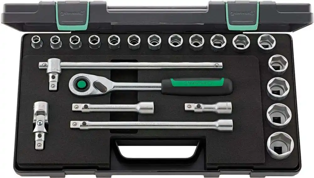 Zestaw końcówek wymiennych klucza nasadowego 12-kątnych 1/2″Wykonanie: narzędzia ze stali chromowej, chromowane. Końcówki wymienne klucza nasadowego ze stali wysokowydajnej HPQ®, z radełkowaną powierzchnią ułatwiająca chwycenie. Narzędzia bezpiecznie przechowywane we wkładce piankowej. Dostawa w kasecie z tworzywa sztucznego ABS przeznaczonej do układania w stosy.