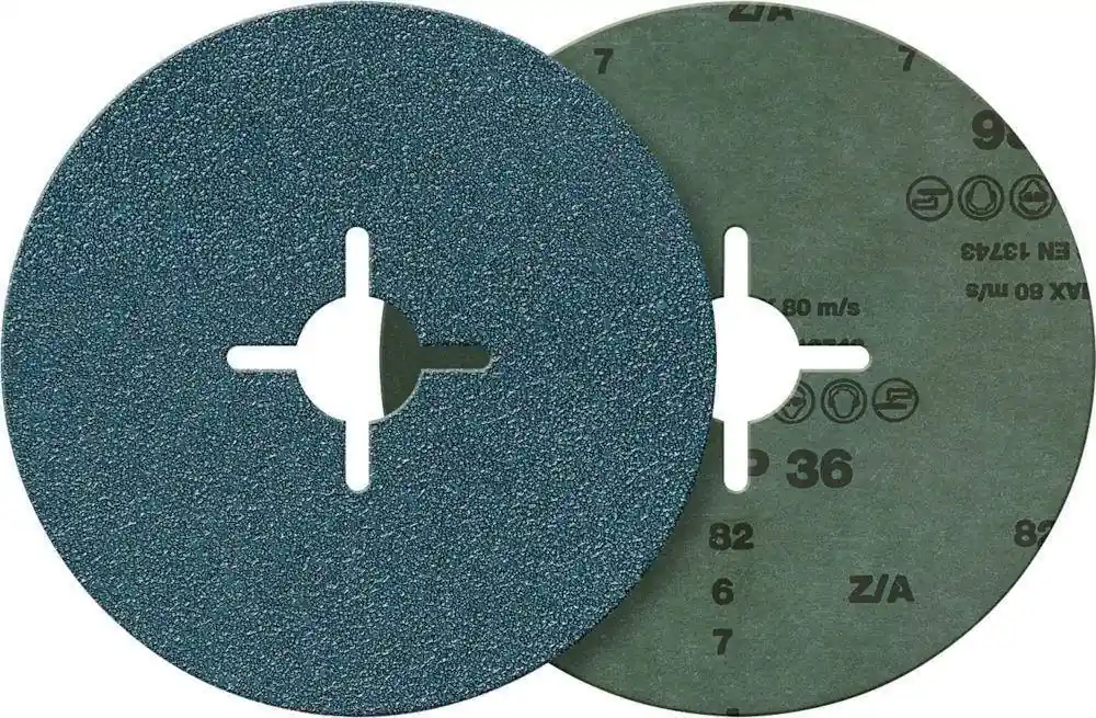 Krążek ścierny, fibrowy, z korundu cyrkonowego•korund cyrkonowy •materiał podkładowy z włókna wulkanizowanego, wysoka wydajność usuwania materiału •do zgrubnego szlifowania, szczególnie do trudnoobrabialnych materiałów, takich jak stal nierdzewna, do odrdzewiania, usuwania zgorzeliny i zadziorów z metalu