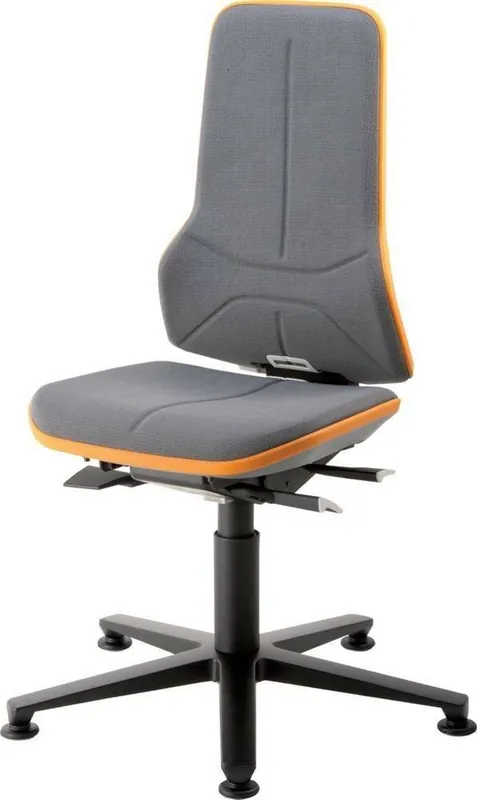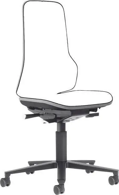 Krzesło podstawowe Neon, bez tapicerki, z elastyczną taśmą w kolorze szarym•mechanizm stałego kontaktu pleców z oparciem lub mechanizm synchroniczny •regulacja wysokości siedziska za pomocą sprężyny gazowej •regulacja ciężaru •bardzo duże ergonomicznie ukształtowane oparcie •stabilny krzyż aluminiowy •ślizgacze o dużej powierzchni lub podwójne kółka z hamulcem zależnym od obciążenia do twardych powierzchni •krzesło w wersji wysokiej ze stopniem z regulacją wysokości