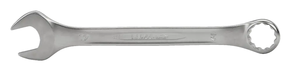 Klucz płasko-oczkowy, odsadzonyWykonanie: DIN 3113, ISO 7738, kształt B. Ze stali chromowej, kuty, końcówka oczkowa głęboko odsadzona, strona otwarta klucza odchylona od osi o 15°. Stabilna część chwytowa z profilem dwuteowym.