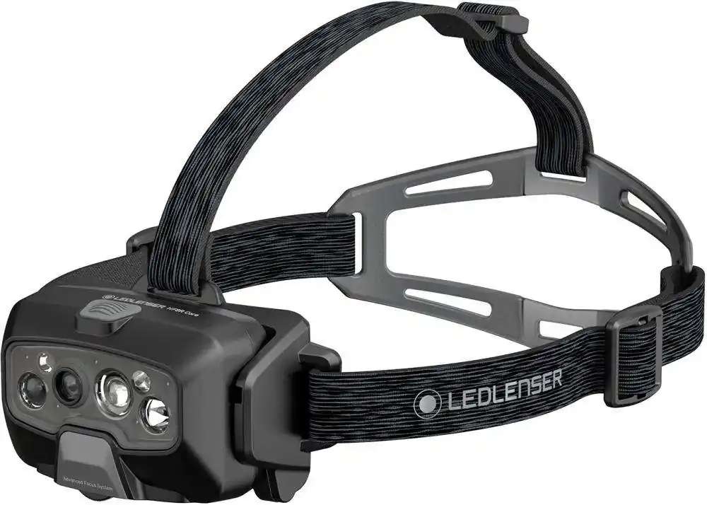 Latarka czołowa, akumulatorowa LED HF6R WorkHF6R Work Obudowa z dodatkową ramką chroniącą przed uderzeniami na przedniej szybce i gumowaną od wewnątrz opaską. Dostawa z akumulatorem litowo-jonowym 3,7 V/2000 mAh, kablem magnetycznym do ładowania, uchwytem na kask i uchwytem ściennym.