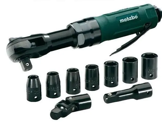 DRS 68 SET KLUCZ PNEUMATYCZNY KĄTOWY 1/2” FIRMY METABO 604119500DANE TECHNICZNE moment obrotowy – 68Nm liczba obrotów – 175/min uchwyt – 1/2″ ciśnienie robocze – 6,2bar pobór powietrza – 220l/min waga – 1,18kg OPIS PRODUKTU Profesjonalny zakrętak do wkręcania i wykręcania śrub: np. podczas napraw samochodów, prac montażowych w przemyśle stalowym. Łatwa zmiana kierunku obrotu na głowicy grzechotki. Wąski kształt zapewnia wygodną pracę również w miejscach trudno dostępnych. Kompaktowa budowa. Ergonomiczna, częściowo gumowana obudowa izoluje termicznie, zapewnia pewny chwyt, redukuje wibracje i gwarantuje komfort pracy. Obrotowy króciec odprowadzania powietrza z boku obudowy WYPOSAŻENIE walizka z tworzywa 7 kluczy nasadowych (9, 10, 11,13, 14, 17, 19 mm), złączka 1/4″, przedłużka 75 mm, olejarka, przegub Cardana, instrukcja obsługi