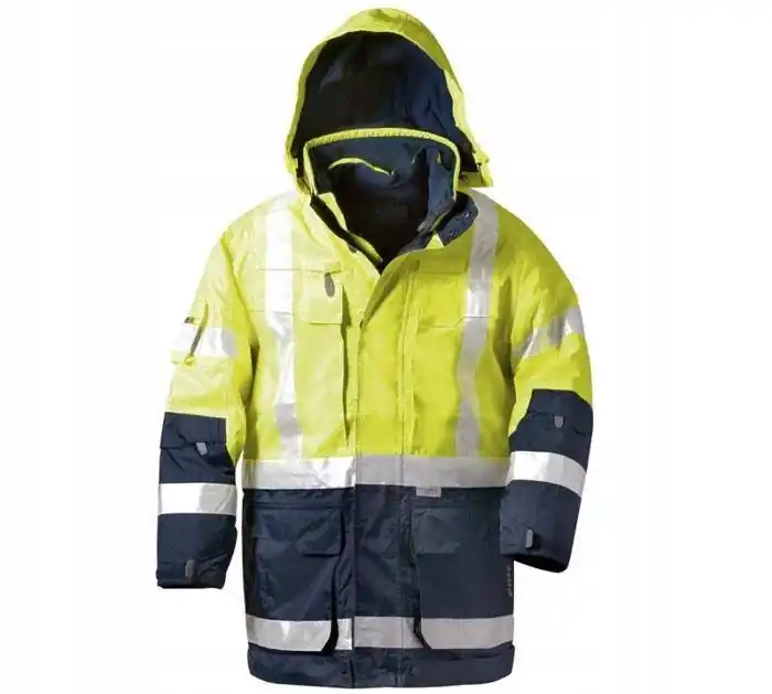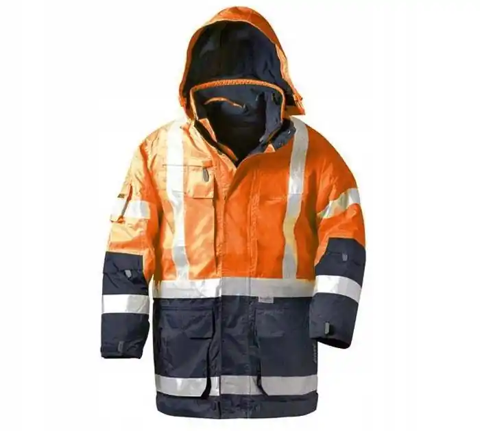Kurtka Robocza Odblaskowa Płaszcz Elysee roz. SOstrzegawczy Ciepły Płaszcz Roboczy z Kapturem – rozmiar SWysokiej jakości kurtka ostrzegawcza Jekyll / Wallace Elysee spełnia surowe standardy. Dlatego też może być użytkowana w bardzo trudnych warunkach przez osoby pracujące fizycznie. Doskonale chroni przed zimnem, wiatrem, deszczem. Jest wytrzymała i łatwa w czyszczeniu. Pokryta powłoką poliuretanową, oddychającą. Ma funkcjonalne kieszenie, w tym takie zapinane na zamek błyskawiczny. Płaszcz posiada odpinane rękawy i kaptur więc bez problemu można przeistoczyć go w kamizelkę ostrzegawczą. Kurtka wyposarzona jest w taśmy odblaskowe 3M™-Scotchlite™ co zapewnia doskonałą widoczność po zmroku w kazdych warunkach pogodowych.Kamizelka:• 2 kieszenie na klatce piersiowej na zamek błyskawiczny i rzep,• 2 wewnętrzne kieszenie na telefon komórkowy / walkie-talkie.Płaszcz:• 1 kieszeń w rękawie,• 2 kieszenie na klatce piersiowej na zamek błyskawiczny i rzep,• 2 wewnętrzne kieszenie na telefon komórkowy / walkie-talkie.Materiał: 100% poliesterCertyfikaty: EN 471 klasa 3, EN 340, EN 343Podszewka: 100% poliesterKolor: pomarańczowy + niebieskiRozmiar: S / 46-48