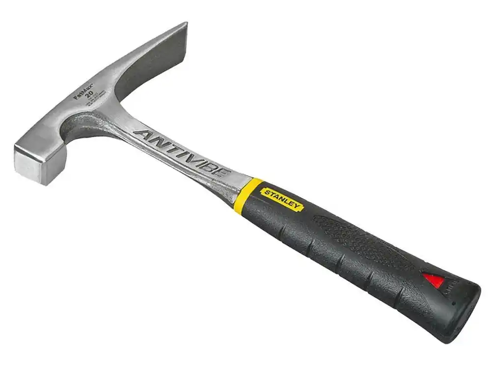 Młotek murarskiWykonanie: kształt reński, odkuwany i ulepszany, z trzonkiem z rury stalowej i z rękojeścią ztworzywa sztucznego.