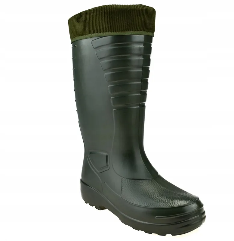 Kalosze męskie LEMIGO GRENLANDER 862 Made in Poland Wykonane z super lekkiego tworzywa EVA Buty bardzo wytrzymałe i wygodne. wykonane z największą starannością. Podeszwa gruba, dobrze wyprofilowana, antypoślizgowa. Idealne na polowania, połowy ryb, na działkę jak i do codziennego użytkowania. Wysokie na podbiciu, szeroka cholewka. Buty są wyposażone w ocieplającą wymienną wkładkę, którą w razie potrzeby można łatwo wyciągnąć, wysuszyć lub wyprać w temperaturze nie przekraczającej 30°C. Dzięki temu kalosze są bardzo uniwersalne nadające się do użytku zimą jak i latem. – wykonane w 100% z najwyższej jakości materiału EVA – para waży około 700-1000 gram, są o wiele lżejsze niż obuwie z gumy lub PCV – wysoki stopień izolacji termicznej dzięki obecności pęcherzyków powietrza w materiale – wodoszczelne, łatwe w utrzymaniu czystości – zapewniają optymalną swobodę ruchu, wygodne i komfortowe – zachowują elastyczność nawet w temperaturze -30C – obuwie można użytkować przez cały rok – wymienny ocieplacz wykonany z filcu – kołnierz sztruks.