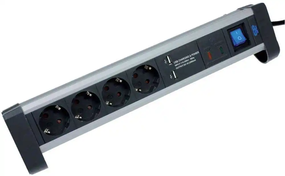 Listwa zasilająca ALUX•1,5 m kabel w płaszczu z tworzywa sztucznego H05VV-F3G1,5 z wtyczką z zestykiem ochronnym •IP20: do stosowania wewnątrz pomieszczeń •do montażu na biurku, z 2 portami USB (tylko 4011160183614)