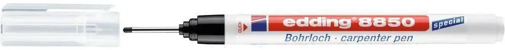 Marker olejowy edding 751Wykonanie: wymienna, okrągła końcówka z trzpieniem z aluminium. Szybkoschnący, bardzo trwały tusz, kryjący jak lakier, wodoodporny, bezwonny i odporny na działanie światła tusz pigmentowy. Tusz jest mocno kryjący i dlatego zawsze zapewnia dobrze widoczne rezultaty nawet przy złym oświetleniu. Odporny na działanie wysokich temperatur do 400 °C, kolory biały i żółty widoczne nawet do 1000 °C. Zastosowanie: do znakowania ciemnych lub przezroczystych powierzchni, np. metal, szkło, tworzywo sztuczne.