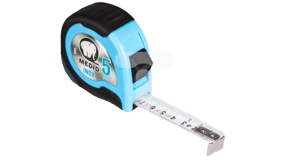 Profesjonalna taśma, hiszpańskiej marki Medid, INOX 3m jest odporna na rdzę, dzięki czemu idealnie sprawdza się w warunkach o dużej wilgotności.Wstęga taśmy została zabezpieczona przed ścieraniem warstwą nylonową oraz wykonano ją ze stali nierdzewnej.Posiada obustronny podział do pomiarów w poziomie i pionie. Solidna obudowa zastała wykonana ze stali nierdzewnej i gumy. SZCZEGÓŁY:- długość nadrukowanej podziałki: 3 m- klasa dokładności: 2- materiał obudowy: stal nierdzewna + elastolan- materiał wstęgi staśmy: stal nierdzewna- szerokość wstęgi: 19 mm- metoda zwijania: samopowrotna- masa: 118 g